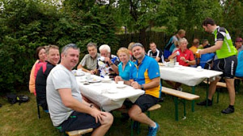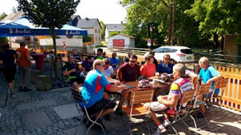 Bei herrlichen Wetter und angenehmen Temperaturen um die 22°C starteten am Sonntag, den 08.07.2018 um 9:00 Uhr, 68 Radfahrer vor dem Ladengeschäft in Straßberg zur diesjährigen Bike-Thiel-Radtour. Im Biergarten des Gasthofes "Altes Haus" in Gumpertsreuth konnte man sich bei einer kleinen Pause wieder stärken.